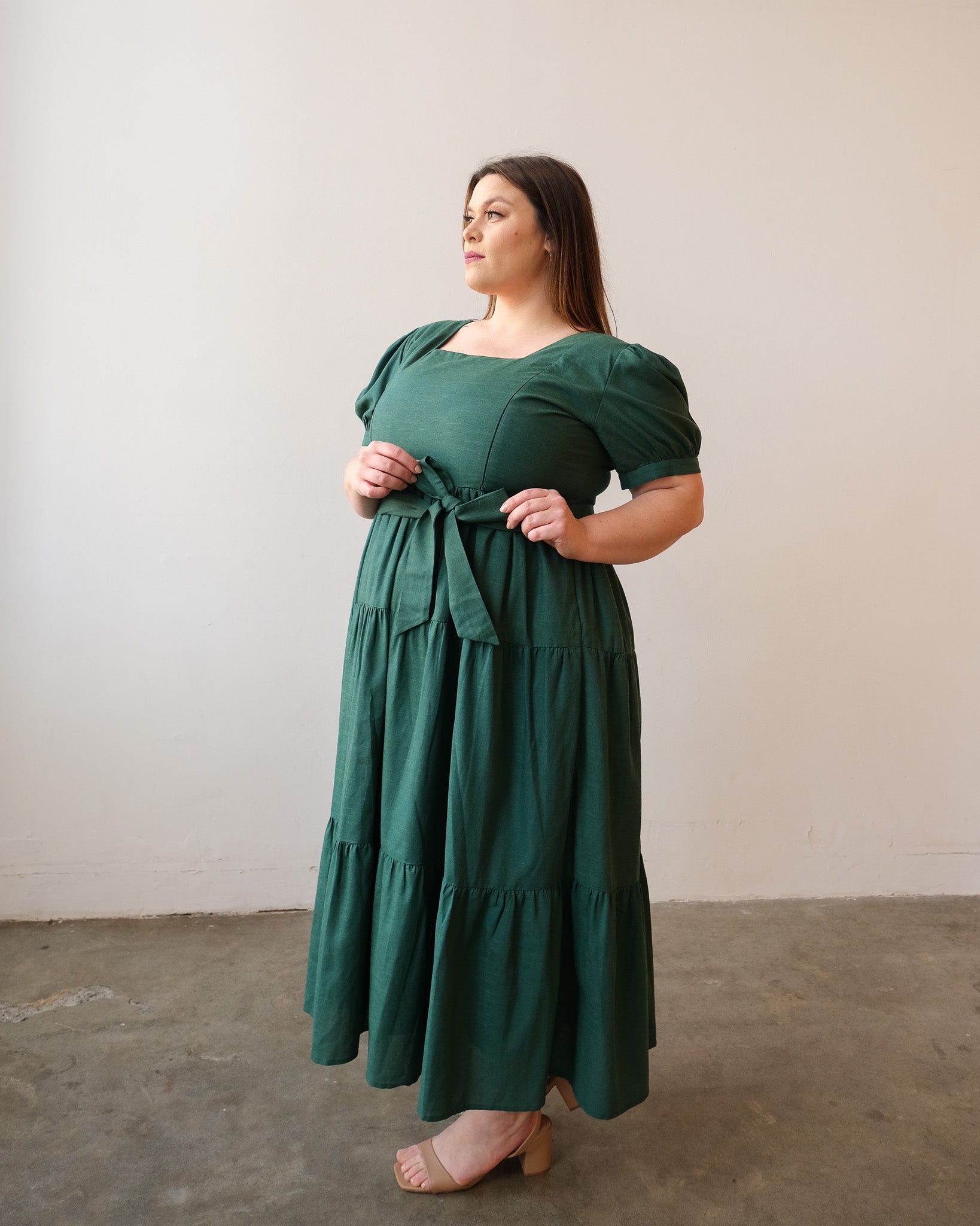 This Versa dress in Evergreen is the ideal blend of comfort and style, perfect for every stage of motherhood. It's suitable for a variety of occasions - from Holiday celebrations, family photoshoots to fun family trips.